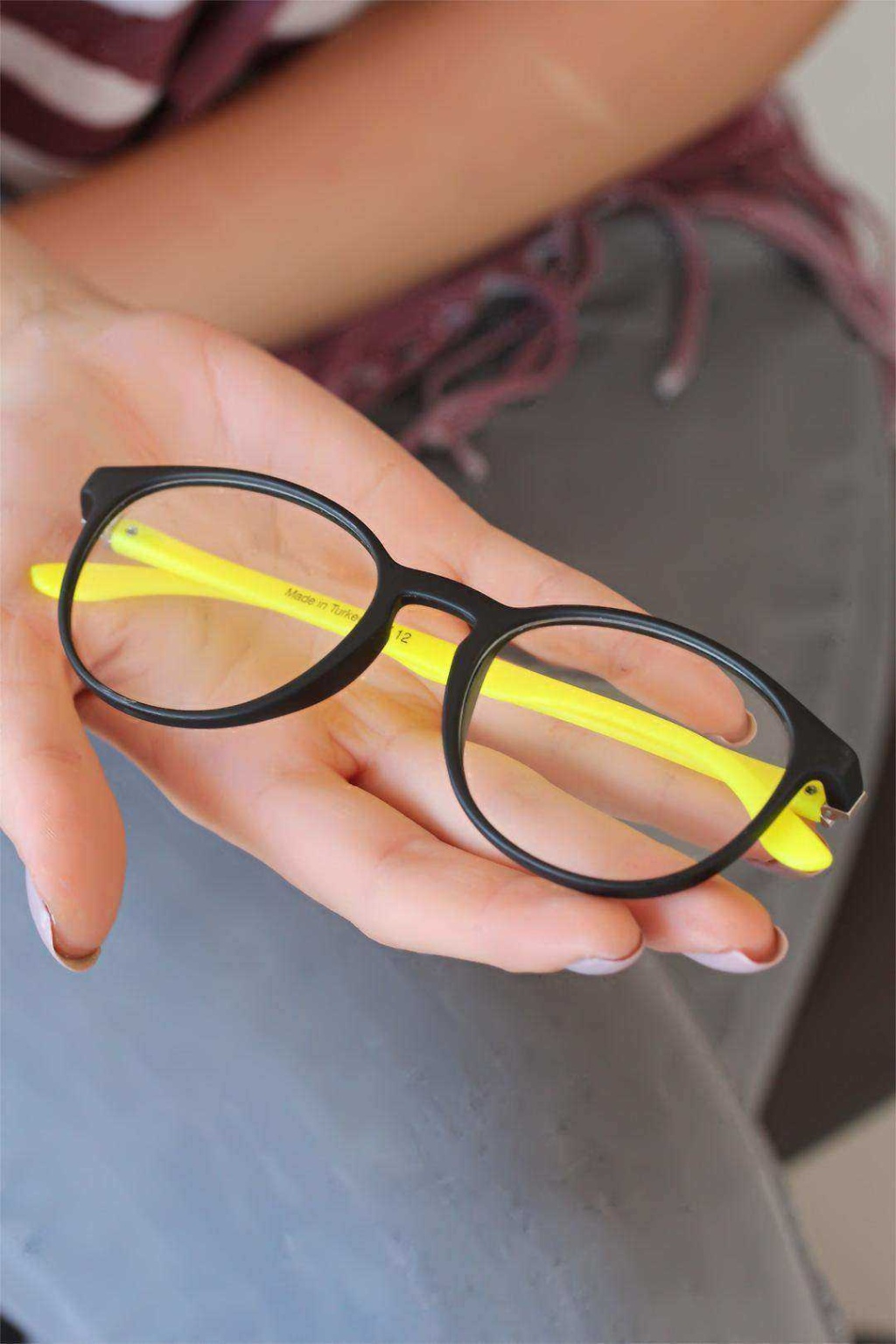 Zıt renklerin uyumu ile tasarlanan Siyah Renk Oval Sarı Renk Gözlüğü sizin için vazgeçilmez olacak.